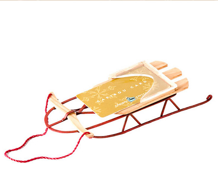 What better way then to present a Caribou Card? But on a Sled Ornament. I love when a gift card holder is also an ornament. This extremely rare and hard to find.