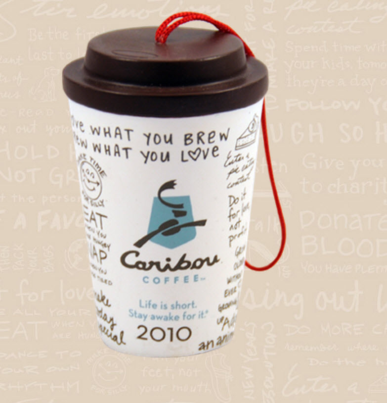 The ornaments started in store around 2005. I have contacted Caribou Coffee and they were unable to tell me when the first issue was, which I was a bit surprised by. So off a searching I went.